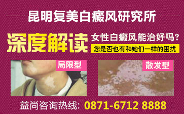 昆明治白斑病咨询复美大家都知道女性朋友是很感性的,由于心思细腻,情绪波动大,内分泌容易因一些因素导致紊乱,这就造成了女性朋友成为白癜风的高发人群,女人都是爱美的,白癜风的出现使她们非常烦恼, 失掉信心,无法面对别人,那么,治疗女性白癜风的关键是什么?接下来,就跟着医院的专家具体了解一下。